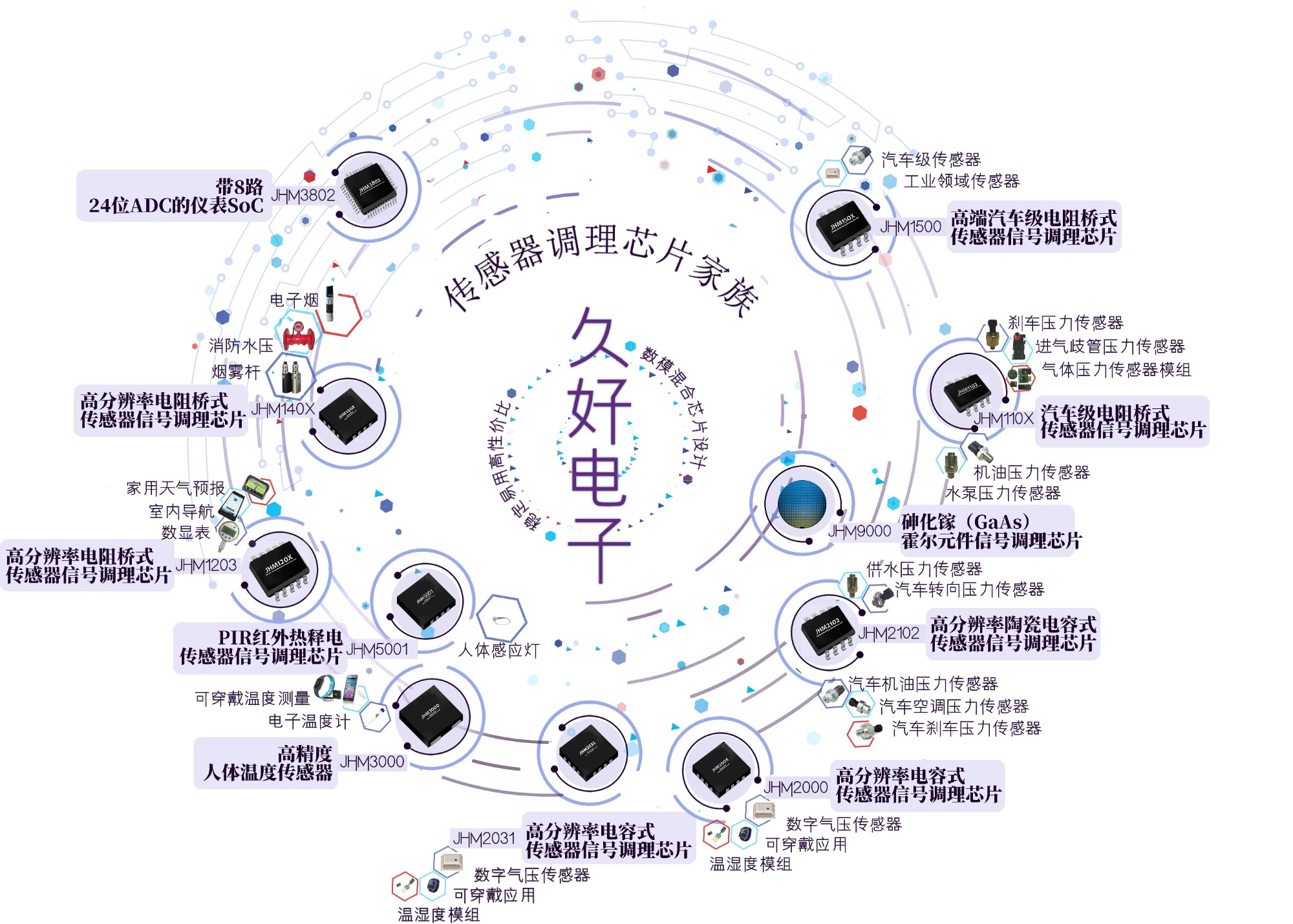 北京久好電子科技有限公司創立于2014年,核心創業團隊為一批清華集成電路校友。公司專注于數?;旌蟂oC芯片的設計開發,已量產的傳感器信號調理芯片系列已經廣泛應用于壓力、溫濕度、紅外熱釋電(PIR)、溫度和電流等傳感器領域,尤其是在車用壓力傳感器領域取得卓越成果。公司在超低功耗數模混合集成電路設計、低功耗SoC系統設計、大批量量產系統與信號調理芯片的應用軟件開發等領域積累了豐富的經驗,能快速地為合作伙伴提供具有世界競爭力的芯片技術及完整解決方案。